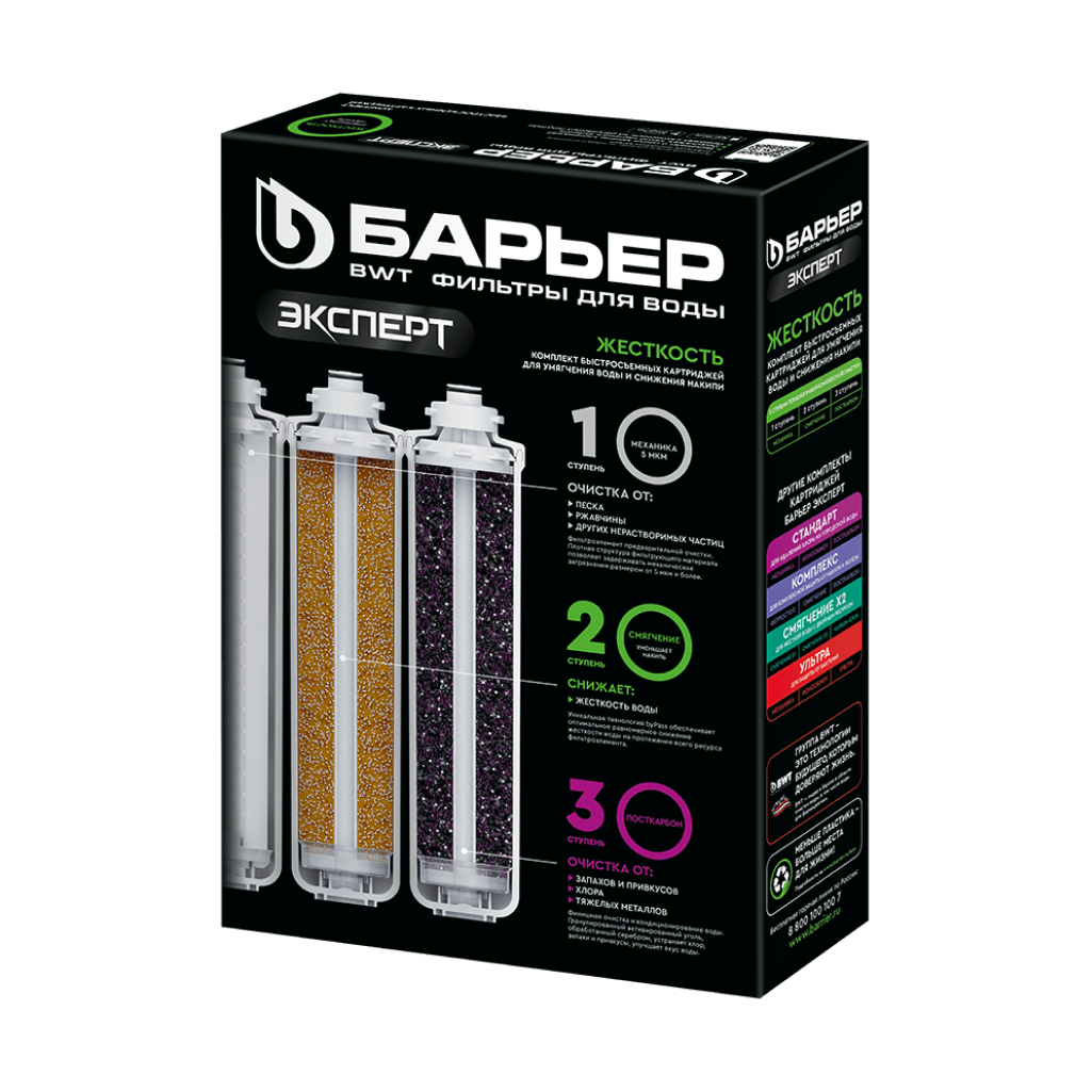 Сменные картриджи для фильтров «Эксперт Жесткость» способны удалить из состава жесткой воды все присутствующие в ней основные вредные примеси. Фильтроэлементы необходимо использовать только в системах холодного водоснабжения. Подходит ко всем фильтрам линейки Барьер Эксперт.