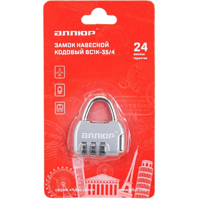 Замок навесной Аллюр ВС1К-35/4 (НА806) серебро, кодовый