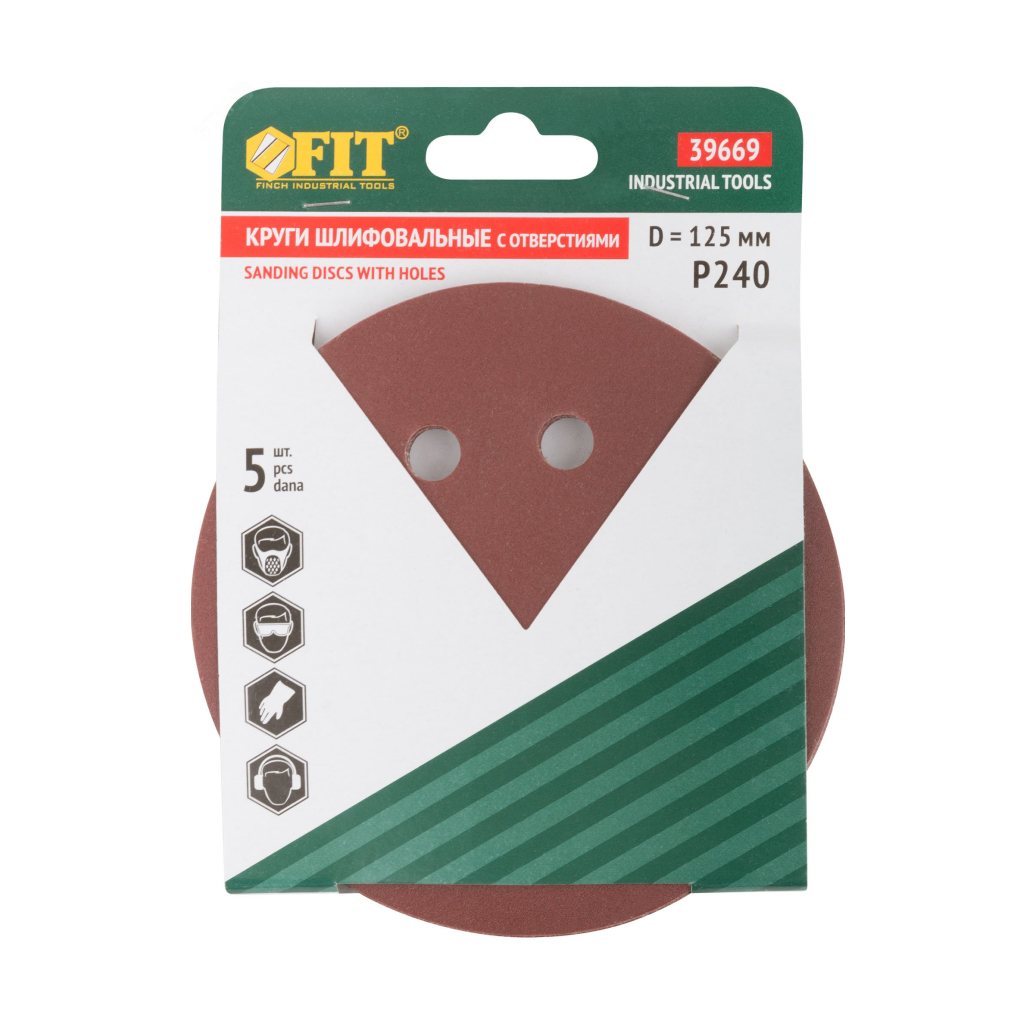 Круг шлифовальный FIT с перфорацией Р240 на липучке 125 мм 5 шт (39669)