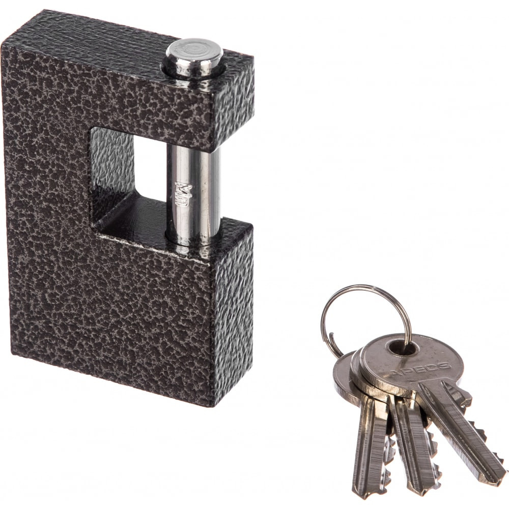 Навесной замок общего назначения с дисковым механизмом секретности. Запирание происходит с помощью ключа. В открытом состоянии запорный стержень фиксируется в корпусе замка и не выпадает.