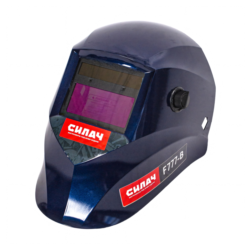Cварочная маска с автоматическим светофильтром, предназначена для глаз, головы и горла сварщика от светового, УФ и ИК излучения при сварке в режимах MMA, MIG-MAG, Plasma. Маска хамелеон СИЛАЧ, модель F777 имеет удобный реечный наголовник позволяет регулировать удаленность маски от лица, высоту посадки маски на голове и размер, что позволяет настроить маску наиболее комфортно для себя.