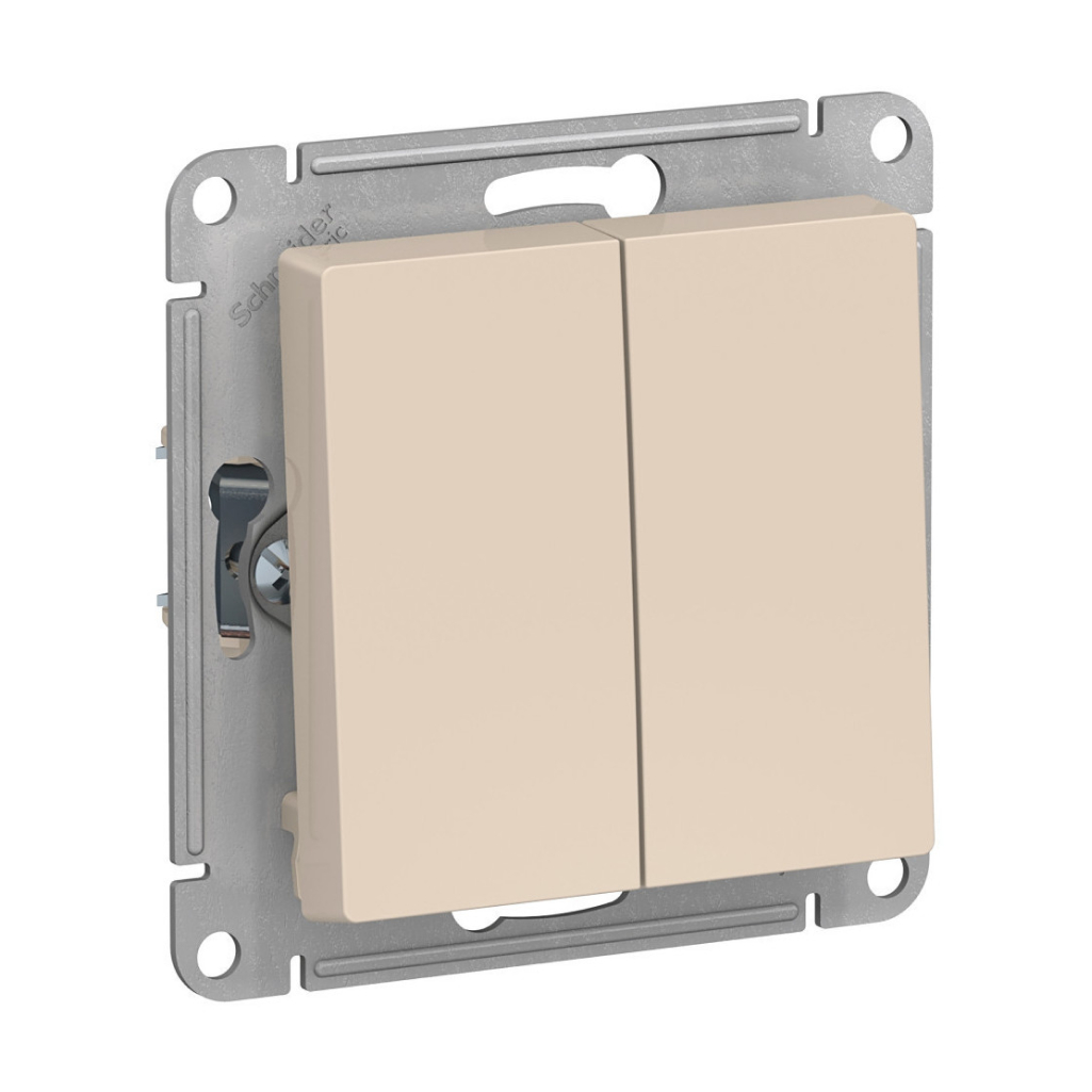 Выключатель Schneider Electric AtlasDesign 2-клавишный скрытой установки, проходной без рамки, бежевый (ATN000265)