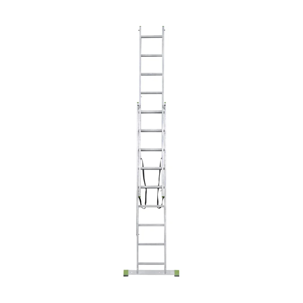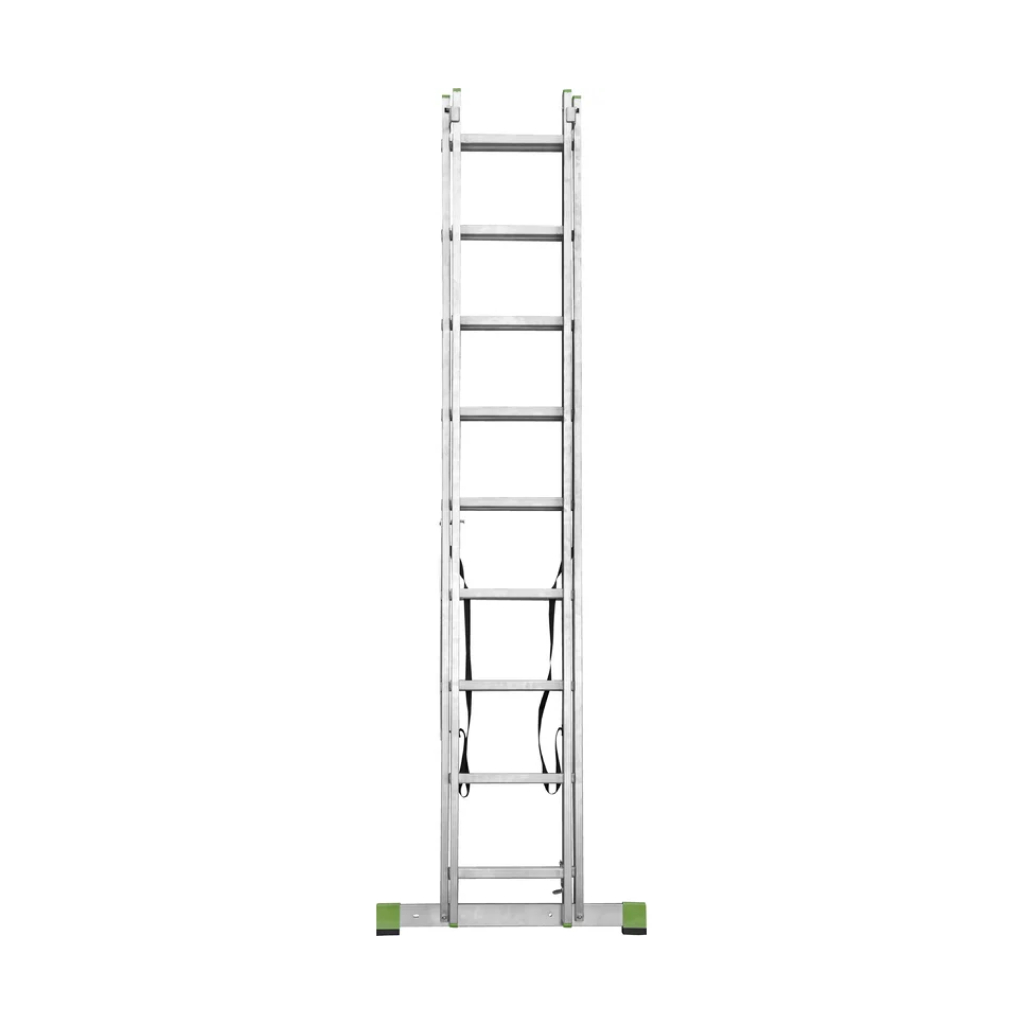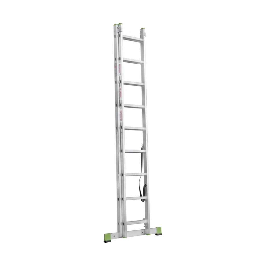 Двухсекционная алюминиевая лестница Новая Высота 2х9 ступеней предназначена для краткосрочных работ и частного применения. Модель может использоваться как: приставная лестница, приставная раздвижная лестница, стремянка. Лестница сделана из экструдированного алюминия, что обеспечивает высокую прочность при лёгком весе.