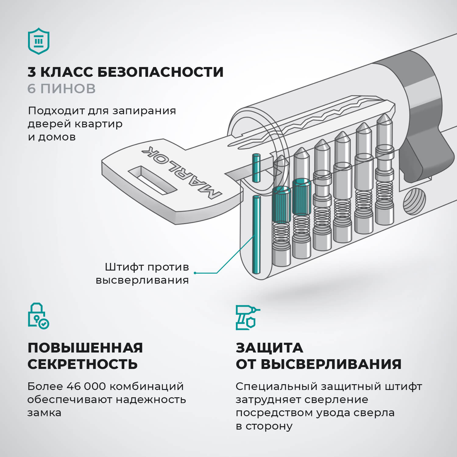 Защищены от вскрытия отмычками, сверлом и методом бампинга.
