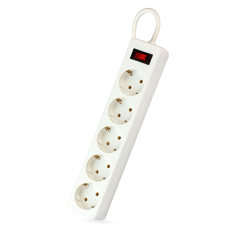 Сетевой фильтр 5 гнезд с заземлением, с выключателем, белый, Smartbuy (1,8 м)
