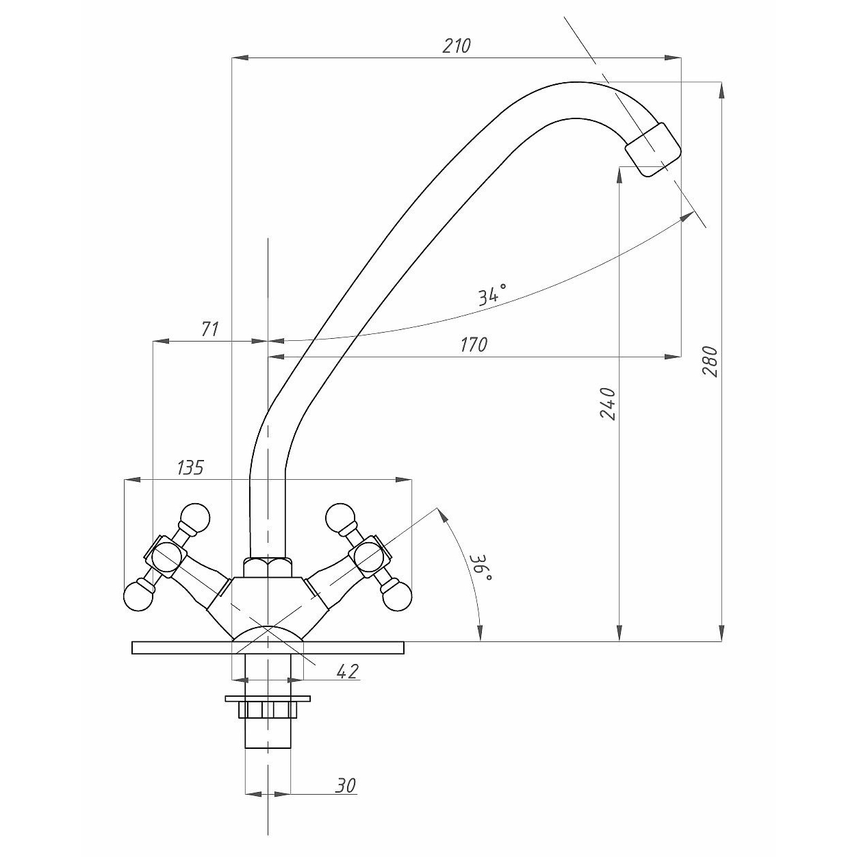 - Конструкция смесителя елочка заключается в расположении маховиков с разных сторон от излива под углом 45 градусов.