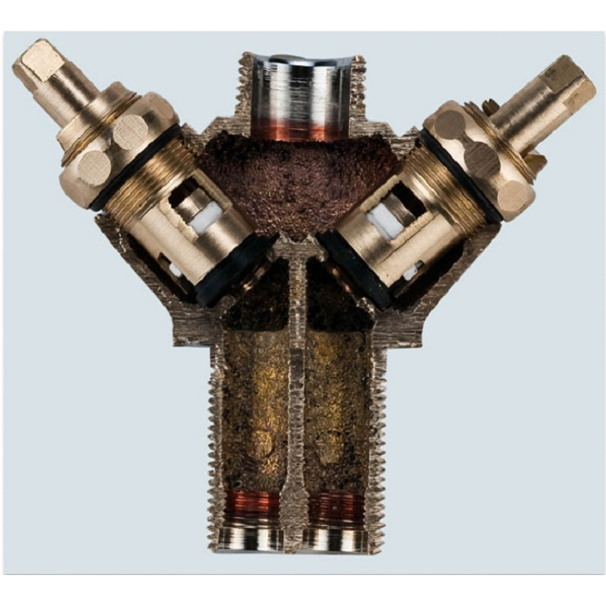 Выполнен преимущественно из высококачественного материала — латуни, обладающего устойчивостью к коррозии и долговечностью внешнего покрытия.