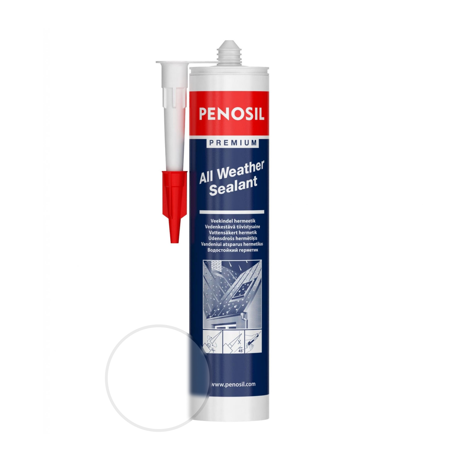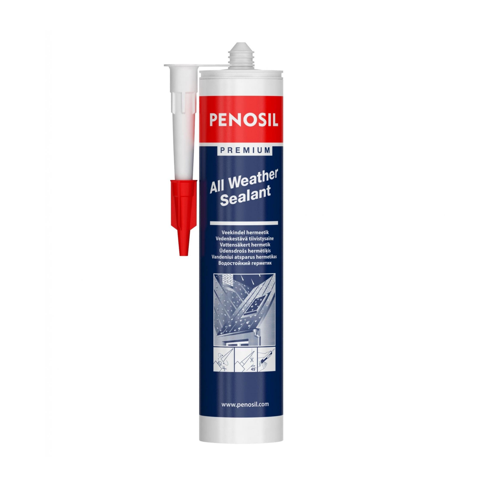 PENOSIL Premium All Weather Sealant - Водоотталкивающий герметик на основе синтетического каучука для внутренних и внешних работ с высокой адгезией. Позволяет даже в дождливую погоду быстро заделывать трещины и щели в мокрых, скользких, маслянистых и пористых поверхностях. Область применения: ремонт кровель, фасадные работы, остекление, герметизация расширительных и соединительных швов.