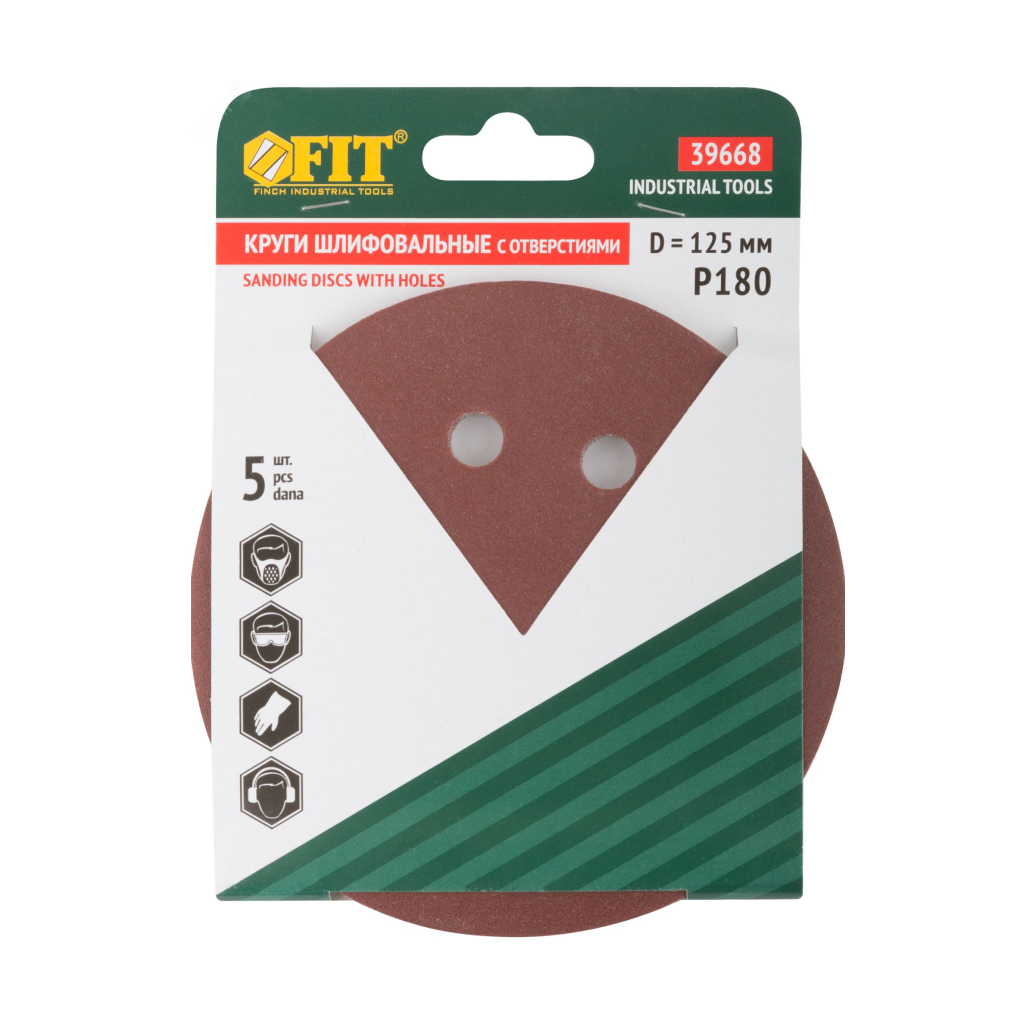 Круг шлифовальный FIT с перфорацией Р180 на липучке 125 мм 5 шт (39668)