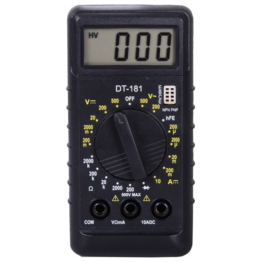 Мультиметр Ресанта TEK DT 181 61/10/511 предназначен для измерений постоянного/переменного напряжения и тока, сопротивления, проверки диодов, транзисторов. Измерения производятся посредством аналого-цифрового преобразователя двойного интегрирования с автоматической коррекцией нуля, определением полярности и индикацией перегрузки. Широко используется как в домашнем хозяйстве и мастерских, так и в лабораториях.