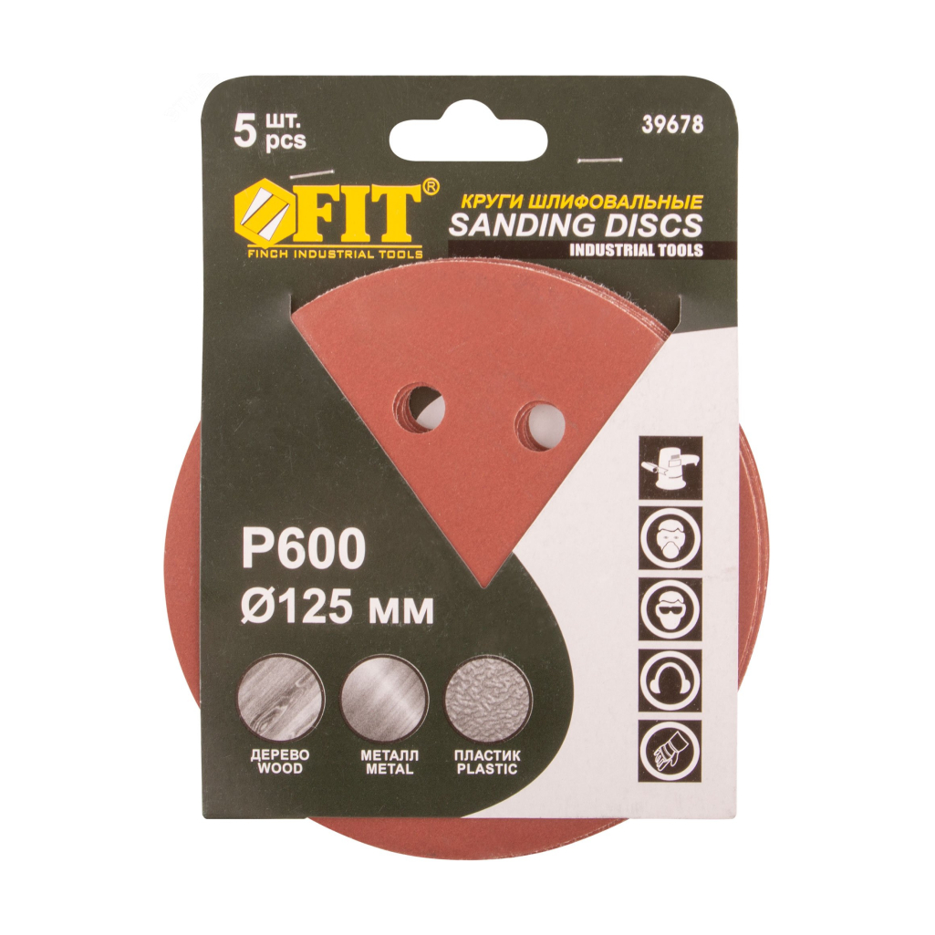 Круг шлифовальный FIT с перфорацией Р600 на липучке 125 мм 5 шт (39678)