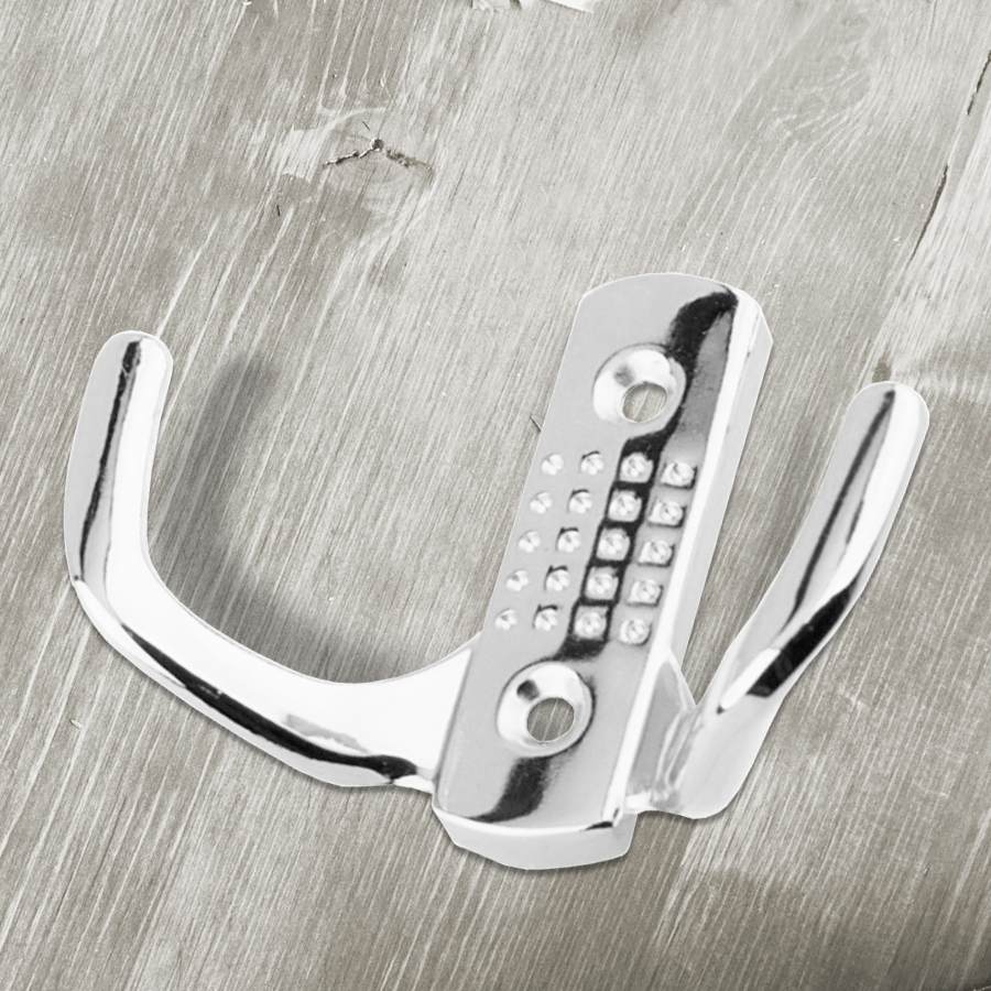 Крючок мебельный марки Trodos, модели ZY-201C, двухрожковый, выполненный с покрытием под блестящий хром. Предназначается для удобного хранения одежды, аксессуаров или сумок . Благодаря своему эстетичному дизайну и качественному покрытию изделие идеально подходит для оформления современных интерьеров жилых помещений и общественных пространств.