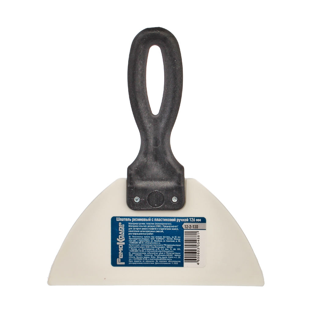 Шпатель резиновый 126 мм белый с пластиковой ручкой, Ремоколор предназначен для затирки швов в кафеле и отделочном камне, нанесения шпаклевочных смесей, реставрационных работ.