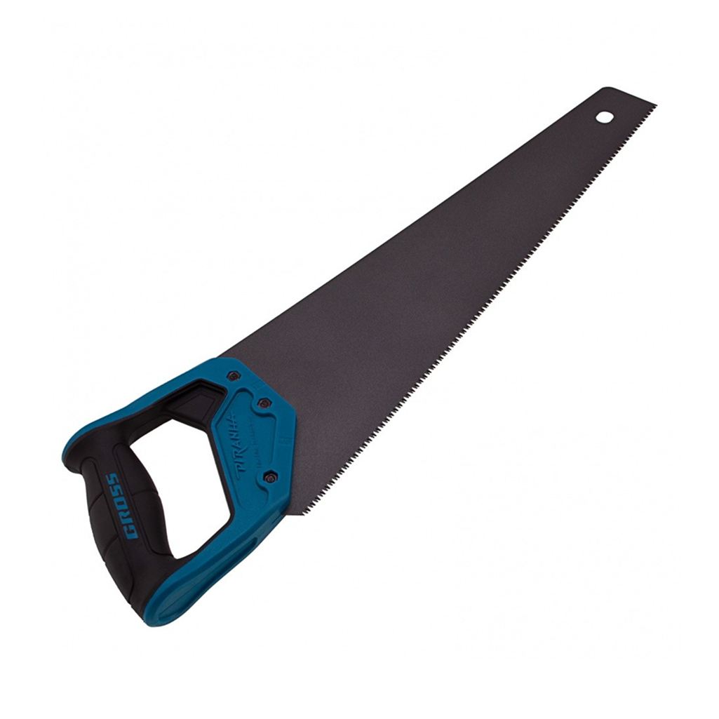 Ножовка по дереву Gross PIRANHA с полотном длиной 450 мм, калеными зубьями с 3D-заточкой и шагом 11-12 TPI, тефлоновым покрытием полотна и 2-компонентной рукояткой, используется для продольного и поперечного распиливания древесины различных пород, МДФ, ДСП, ДВП, ламината, а также пенополистирола, полиуретана и других синтетических материалов. Рабочая часть состоит из мелких зубьев с шагом 2-2,3 мм, что позволяет получить ровный и чистый рез. Трехгранная заточка зубьев увеличивает производительность инструмента без потери качества распиловки. Ножовка предназначена для столярных работ.