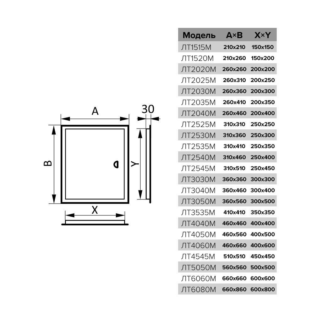 Устанавливается в стену. Оснащен ручкой для удобства открывания/закрывания люка, магнитными замками для фиксации дверцы в закрытом положении и предотвращения случайного открывания. По контуру дверцы имеется рамка, которая скрывает любые неровности проема. Монтаж осуществляется при помощи раствора или клея. Подходит для универсального монтажа с левосторонним или правосторонним открыванием.