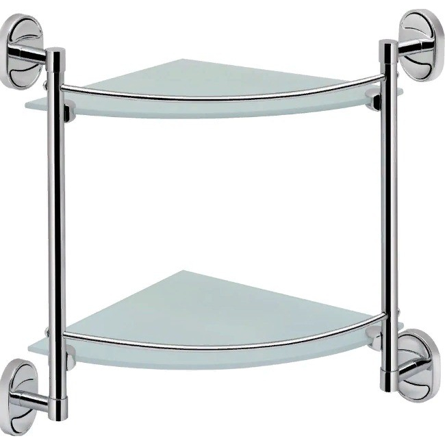 Полка стеклянная угловая двухъярусная - оптимальный вариант для ванной комнаты.