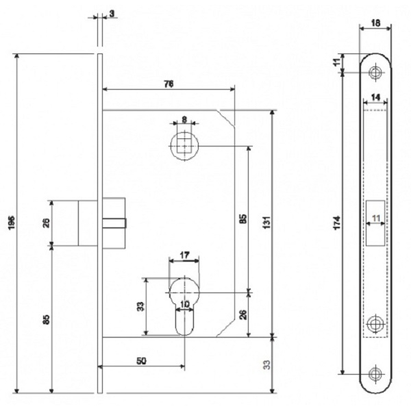 | Удаление ключевого отверстия (Backset),мм | 50 |