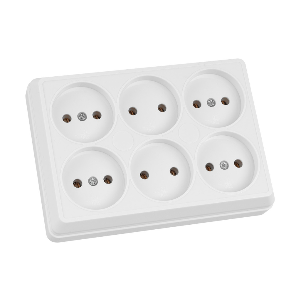 Розетка TDM Ладога 6-местная б/з открытой установки, белый (SQ1801-0140)