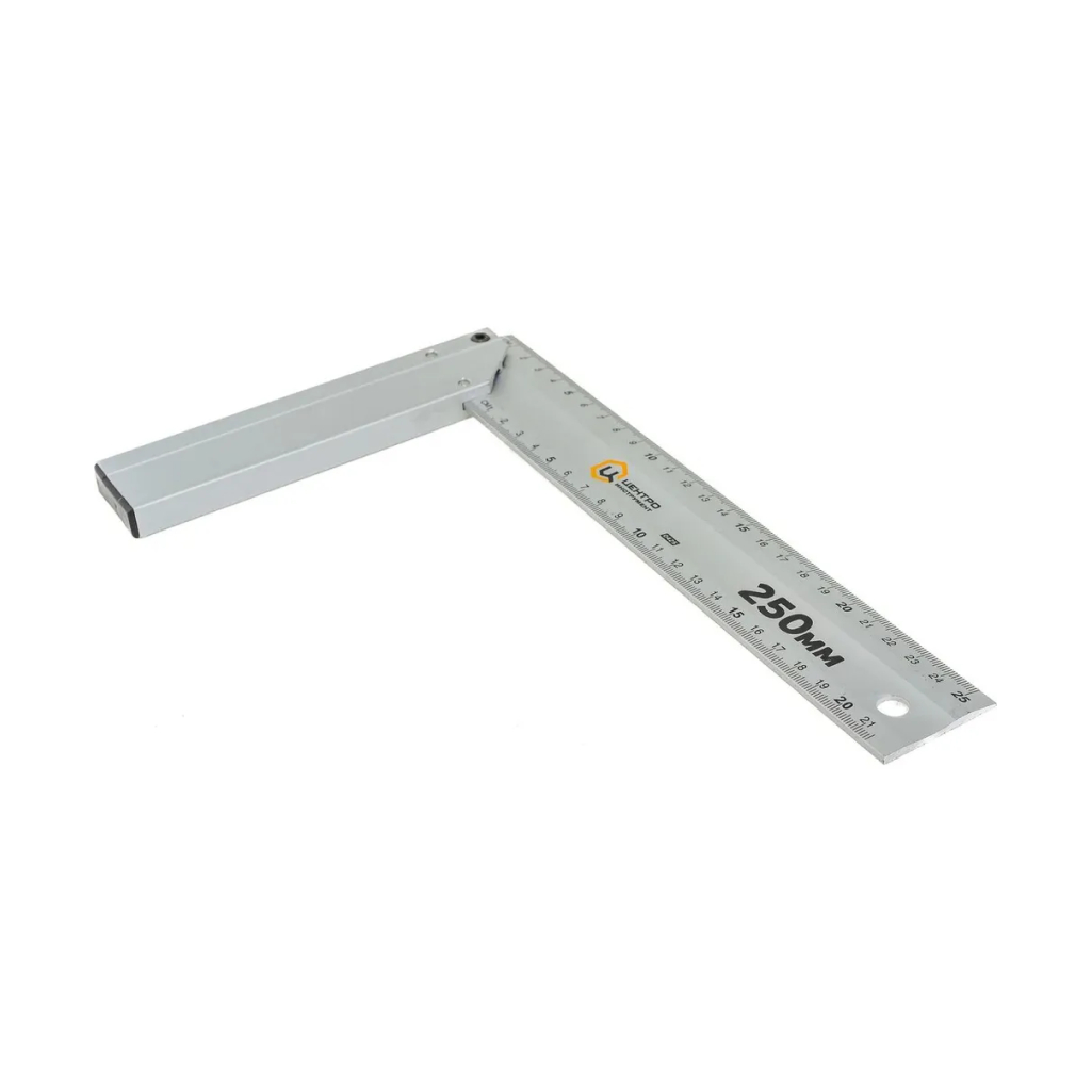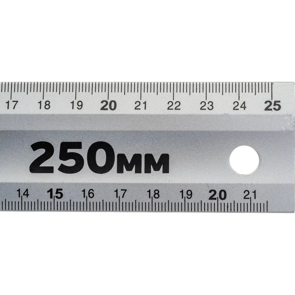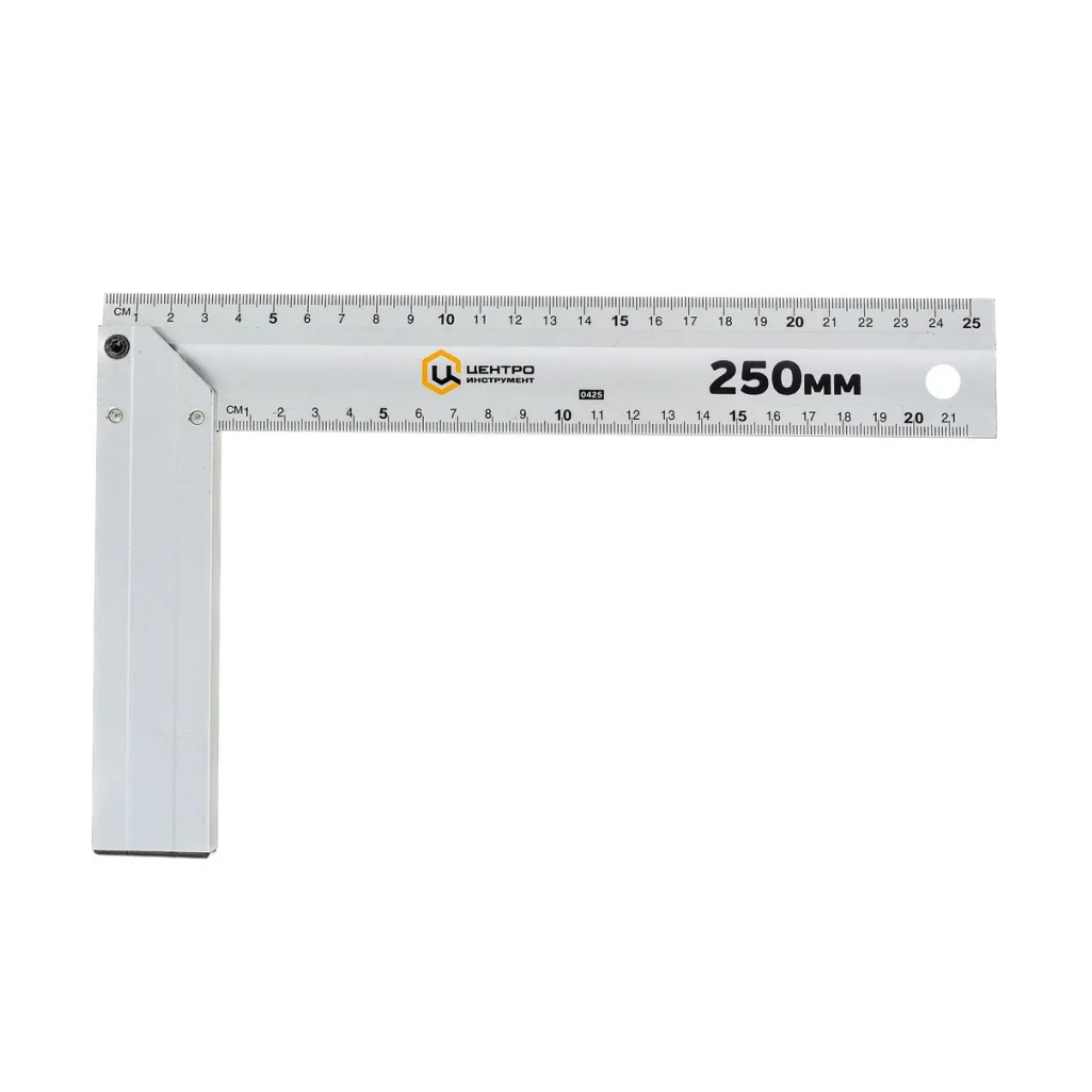 Алюминиевый угольник 250 мм Центроинструмент представляет собой облегченный измерительный инструмент небольших размеров для определения отклонений от прямого угла. Его малый вес обеспечивается за счет материала полотна - алюминия. Угольник имеет четкую одностороннюю измерительную шкалу. Длина полотна инструмента составляет 25 см, а ширина - 4 см.