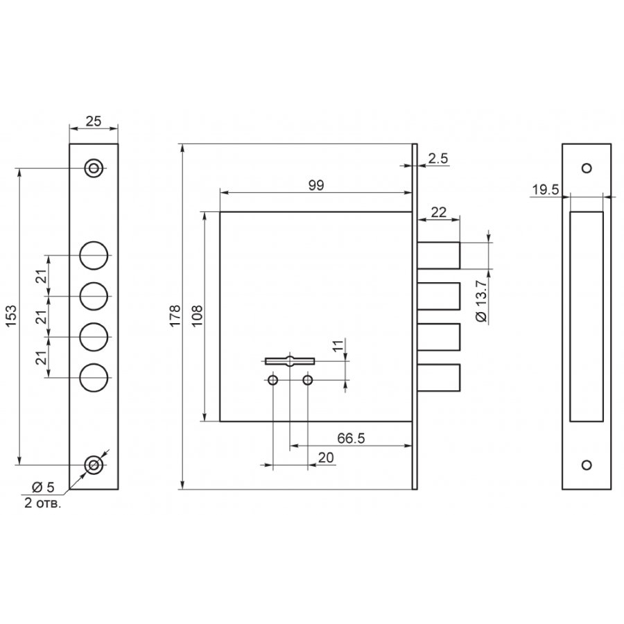 | Удаление ключевого отверстия (Backset),мм | 66,5 |