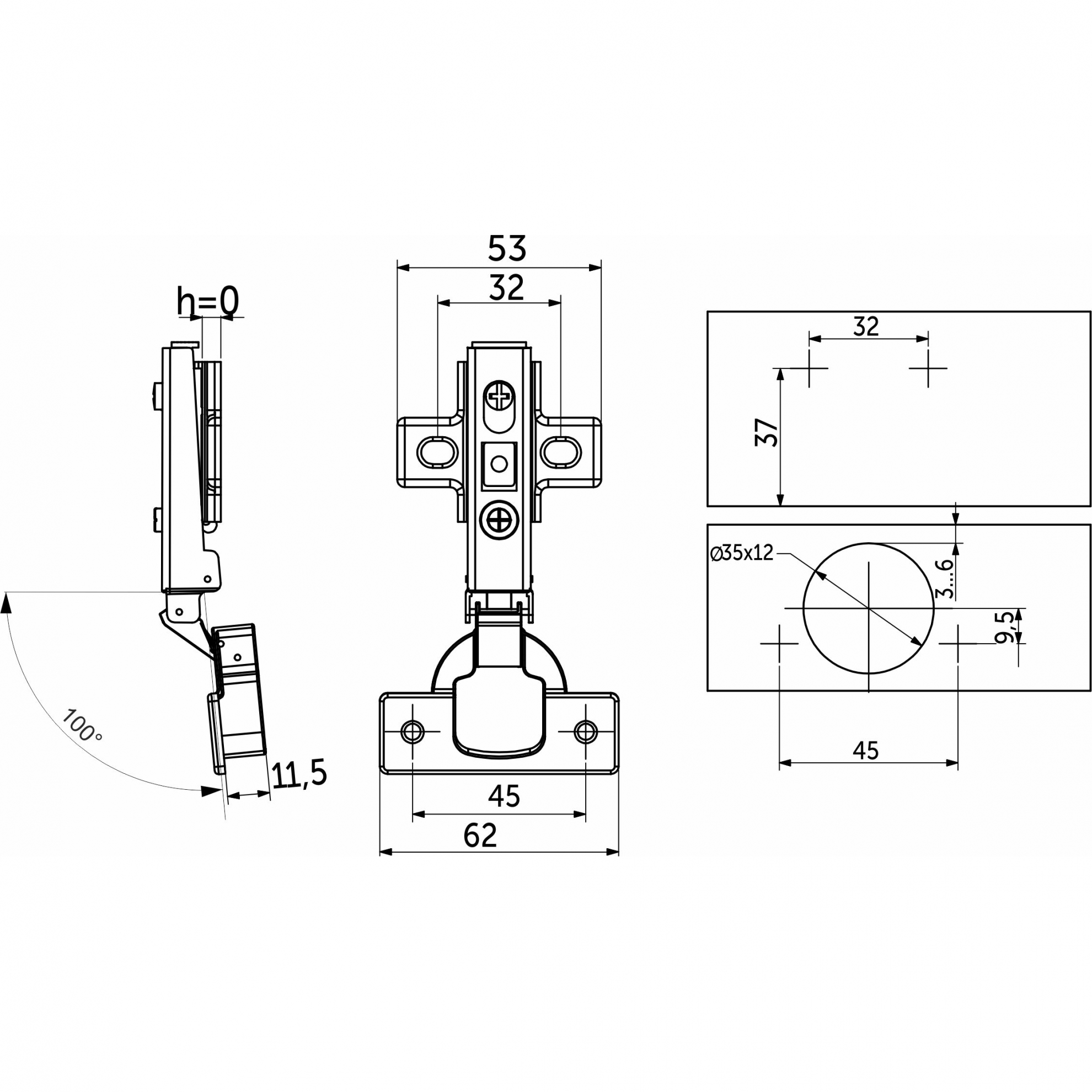 Петля накладная выполнена из холоднокатаной стали. С чашкой 35 мм, имеет механизм быстрого монтажа clip on и регулировочный демпфер, обеспечивающий плавное закрывание.