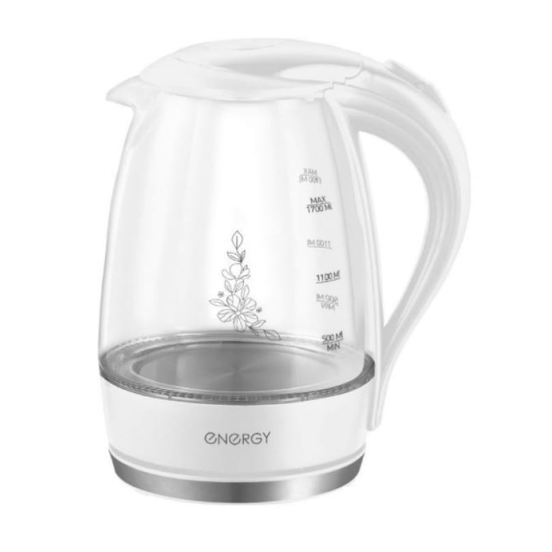 Чайник Energy E-262 1.7 л, стекло/пластик, белый - незаменимый прибор на любой кухне, будет полезен как в квартире или в загородном доме, так и в офисе.