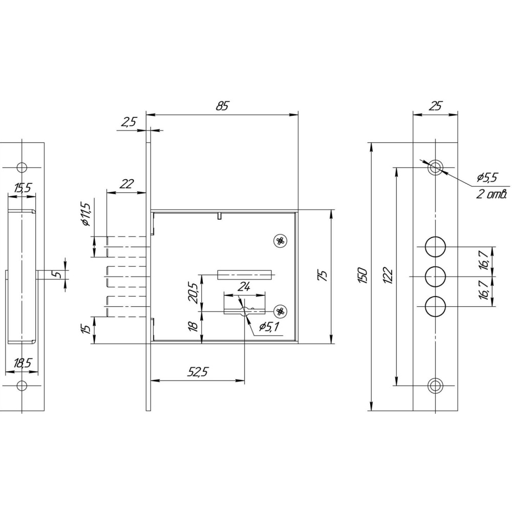 Замок врезной сувальдный ЗВ8 852.0.0 сертифицирован на соответствие 2 классу ГОСТ. Подходит для установки как во входные двери (в качестве дополнительного запирающего устройства), так и в дверцы металлических шкафов. Замок имеет одно направление запирания . Замок запирает дверь на два полных полуоборота. Комплектуется лицевой планкой из высококачественной стали, а также двумя декоративными накладками на ключевую скважину из нержавеющей стали, тремя латунными ключами с пластиковой головкой. Замок не имеет защелки, поэтому рекомендуется к применению в качестве второго запирающего устройства.