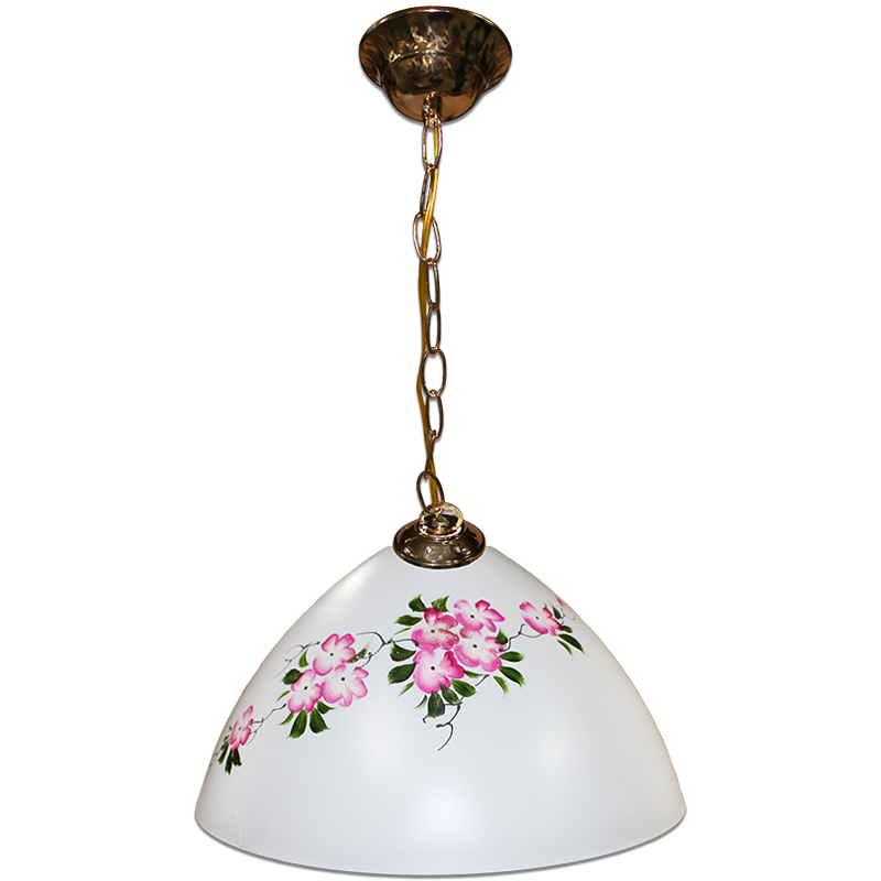 Светильник Крокус-колпак Сакура большой, белый/розовый/цепь