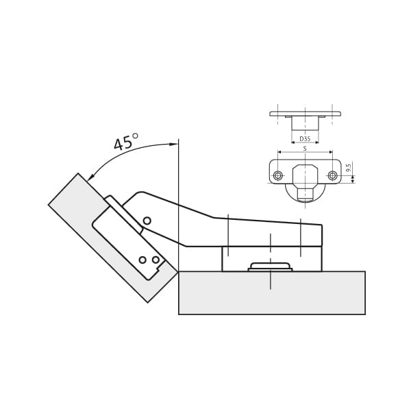 Петли четырехшарнирные 45 градусов обычно используются в кухонных угловых модулях, расположенных над мойкой, а также, иногда, и в боковых модулях. Фасады в таких модулях крепятся к боковым стенкам под тупым углом.