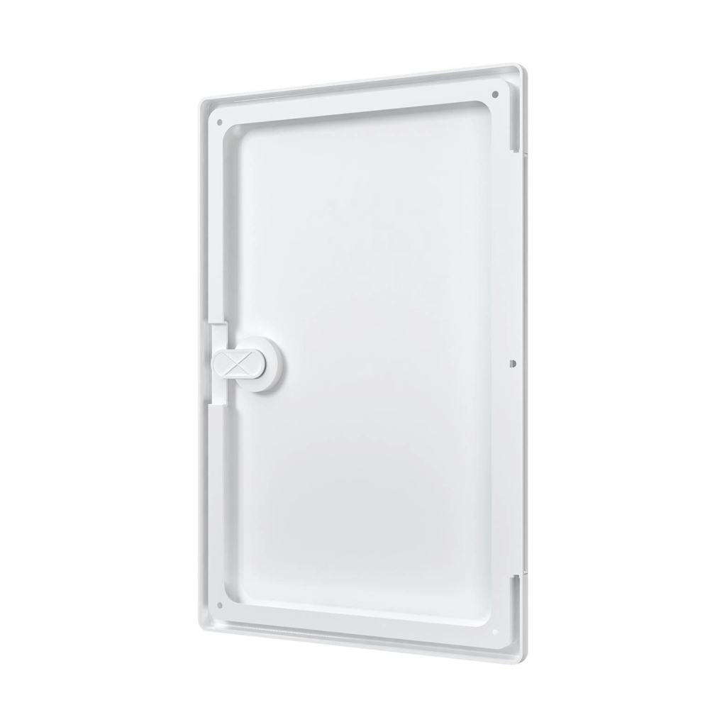Монтаж с помощью саморезов. Для доступа к скрытым узлам и инженерным коммуникациям. Предназначен для установки в стене или потолке. Оснащен ручкой-задвижкой для удобства открытия/закрытия дверцы. Возможность универсального монтажа для левостороннего или правостороннего открывания. Возможно использование во влажных помещениях.