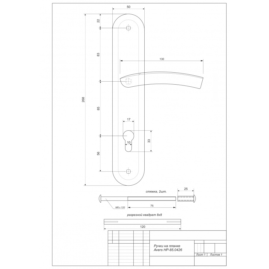 Ручка дверная на планке Avers НР-85.0426-CR