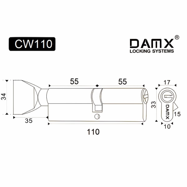 Цилиндровый механизм (личинка) 110 мм DAMX СW110 SN, ключ/вертушок, матовый никель