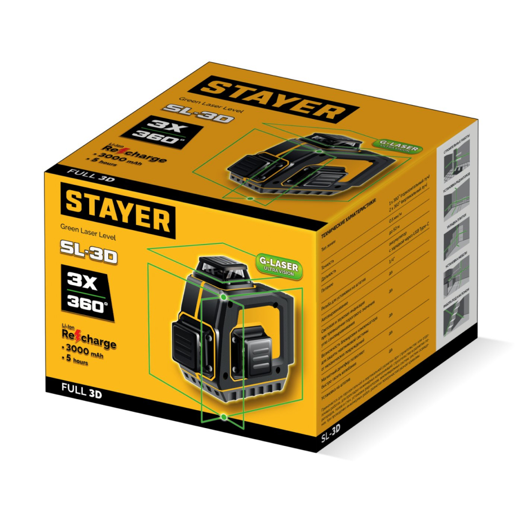 Лазерный нивелир Stayer SL-3D 50 м линейный (34963)