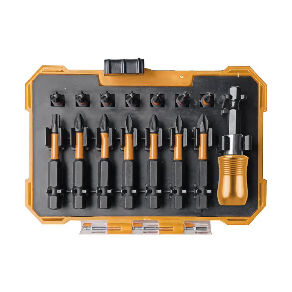 В набор входят биты разной длины (25 мм и 50 мм), что делает его универсальным инструментом для различных задач. Магнитный шлиц PH2 обеспечивает дополнительное удобство и предотвращает выскальзывание, что особенно важно при интенсивной работе.