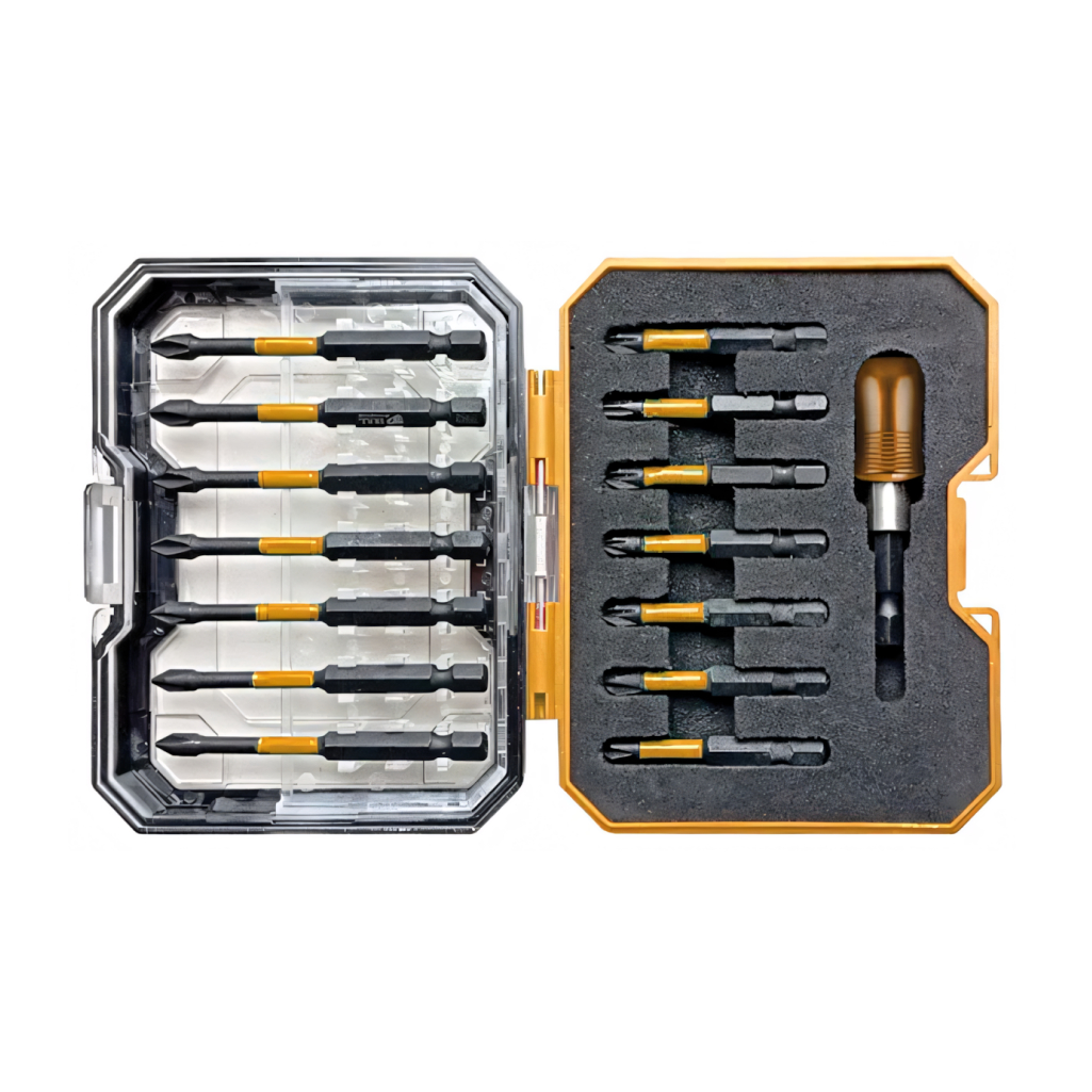 Преимущества набора включают намагниченный шлиц PH2, который предотвращает выскальзывание и повреждение, обеспечивая удобство и безопасность в работе. Это делает его идеальным выбором для профессионалов, требующих высоких стандартов.