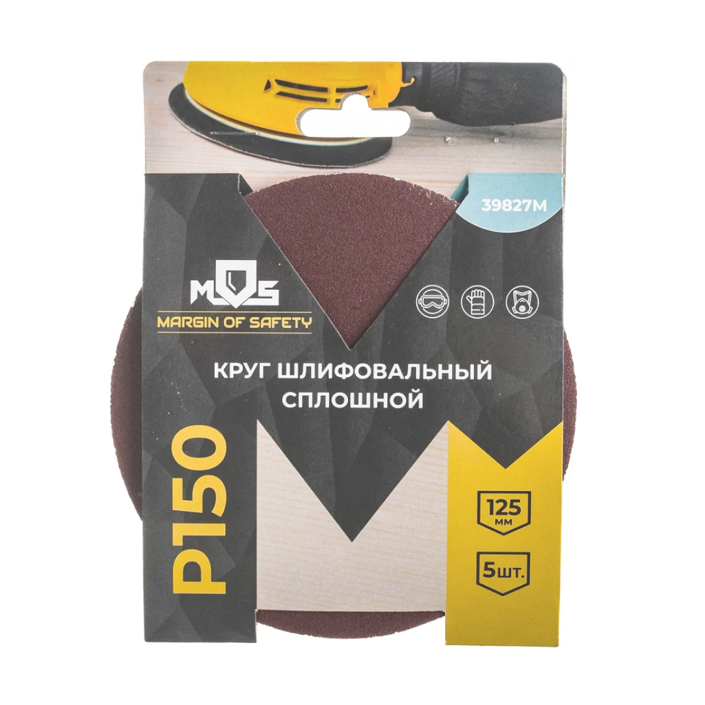 Круг шлифовальный MOS сплошной Р150 ø125 мм на липучке 5 шт (39827М)