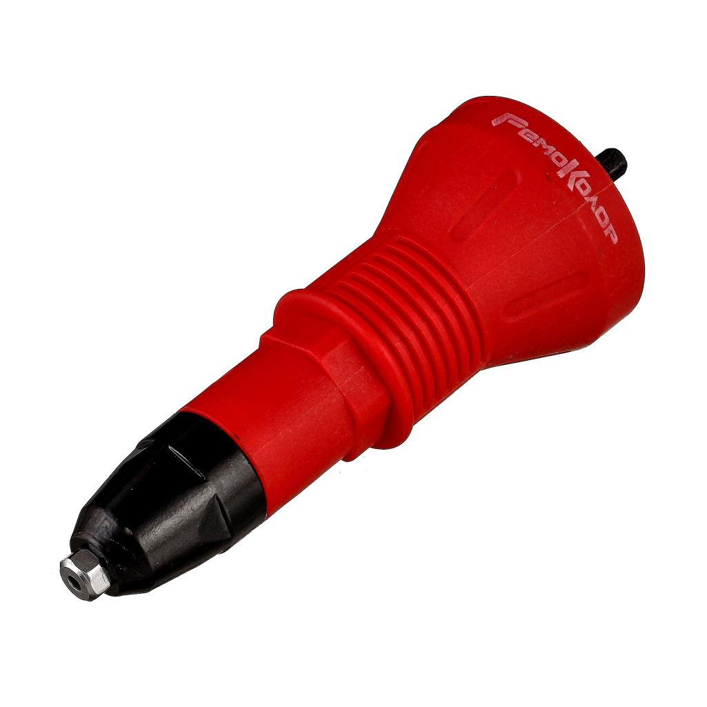 Предназначен для работы с шуруповертом или дрелью с функцией "Реверс". Применяется для установки вытяжных заклепок диаметром 2.4, 3,2, 4,0 и 4.8 мм. 6-гранный хвостовик хорошо фиксируется в кулачковом патроне и не проскальзывает при работе. Имеет пластиковый корпус.