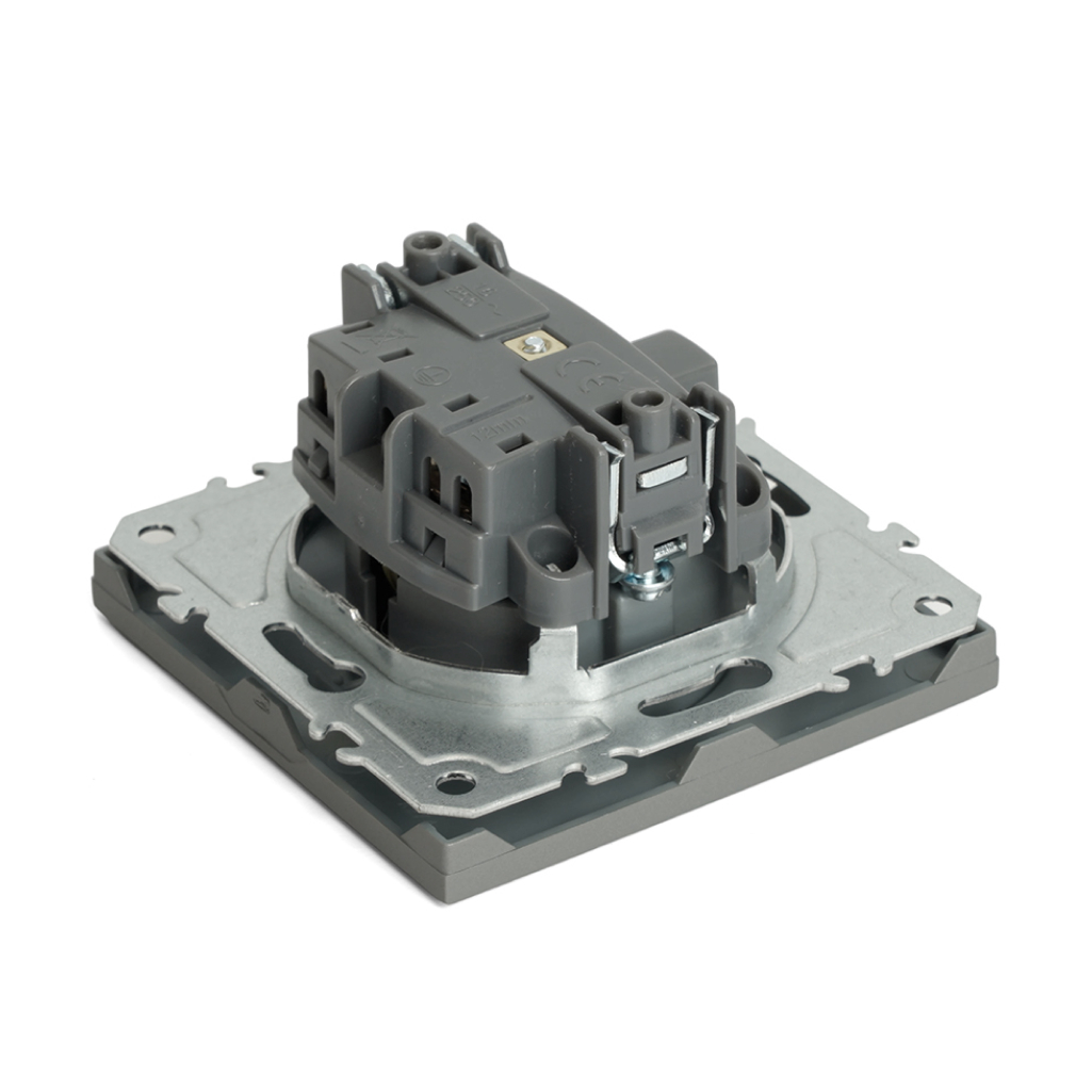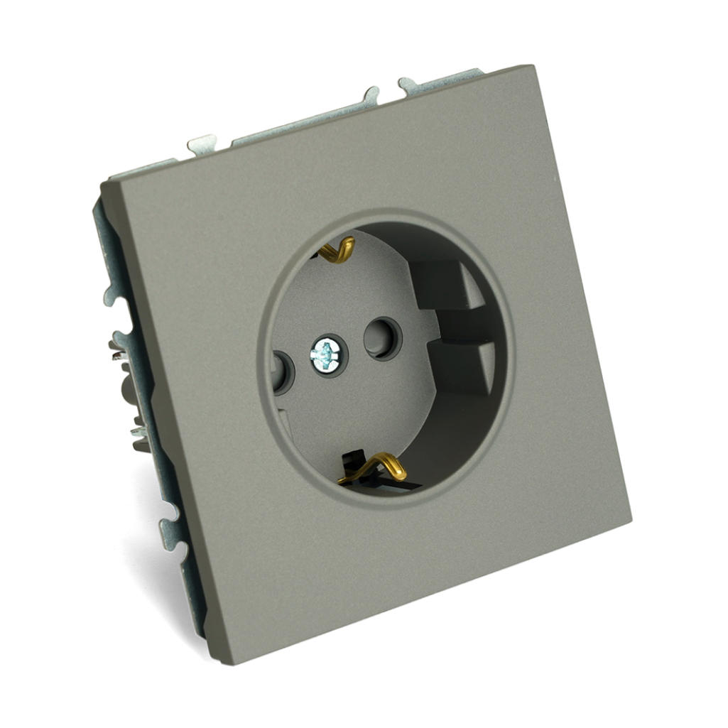 Розетка Stekker Эмили 1-местная с/з скрытой установки без рамки, платиново-серый (RST16-5110-10)
