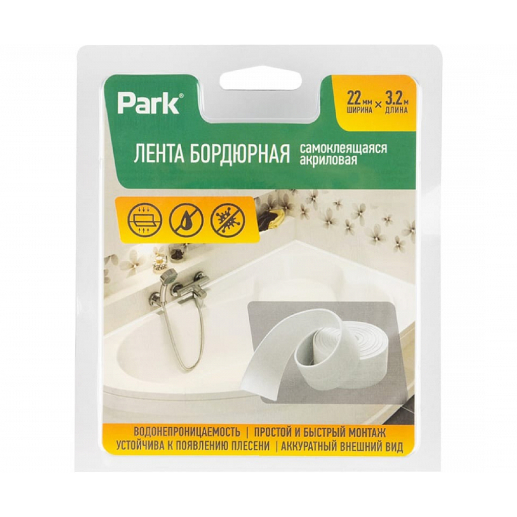 Лента-бордюр для ванны Park 22 мм х 3,2 м самоклеящаяся, белая