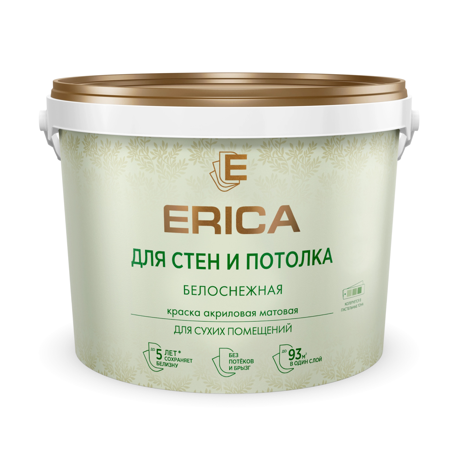 Краска Erica Для стен и потолка Белоснежная акриловая матовая, белая 1,4 кг