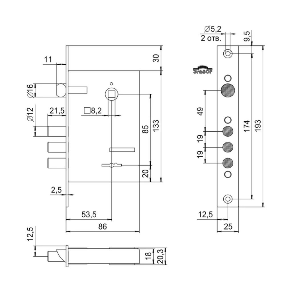 Замок врезной Эльбор Кремень 1.04.27.5.1