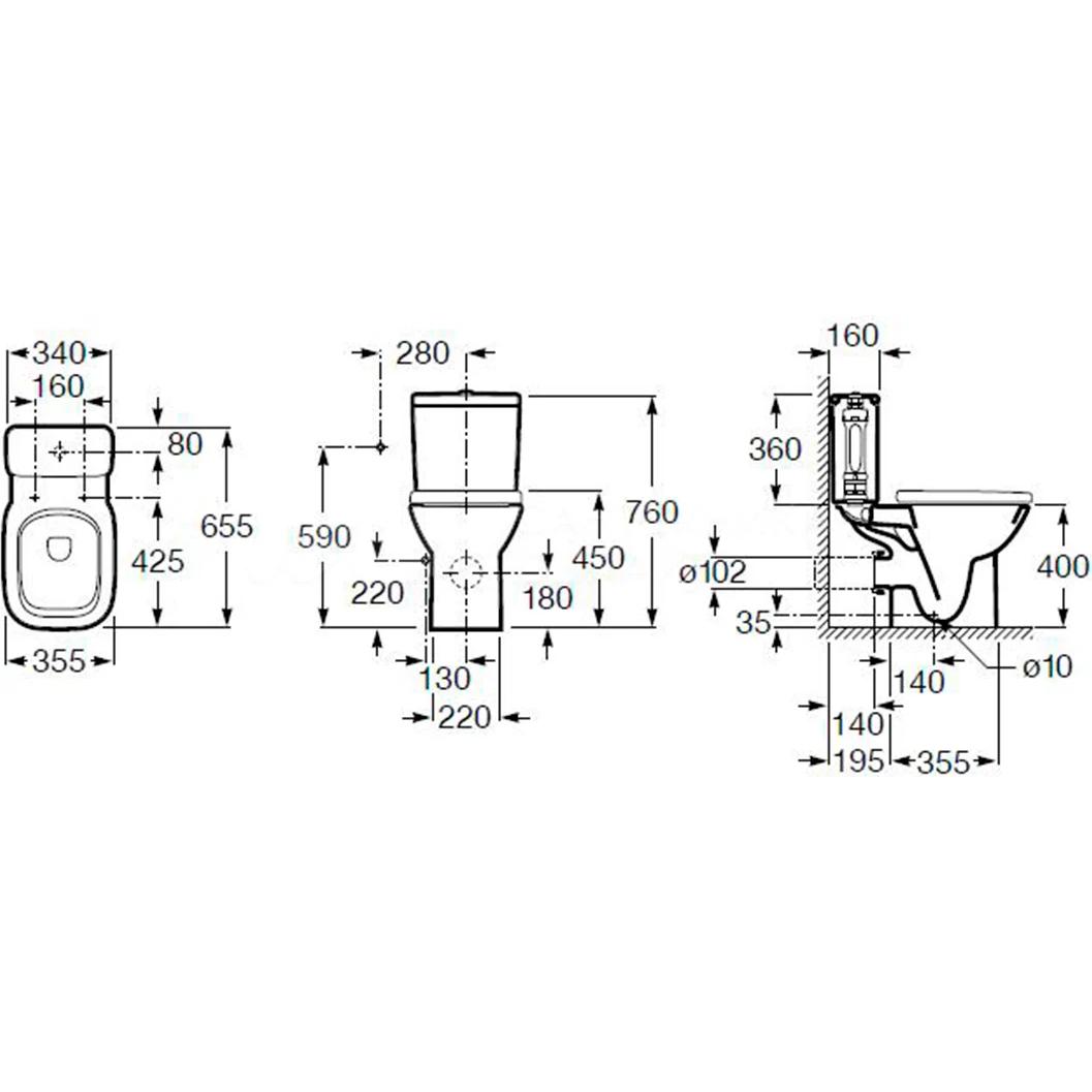 Унитаз-компакт Roca Debba дюропласт ,микролифт, горизонтальный выпуск