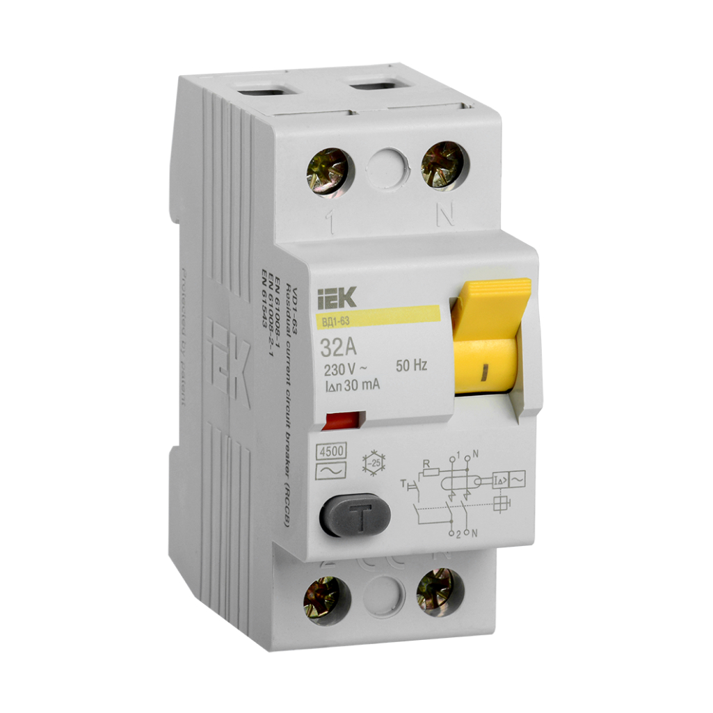 Автоматический выключатель дифференциального тока УЗО IEK ВД1-63 2р 32А
