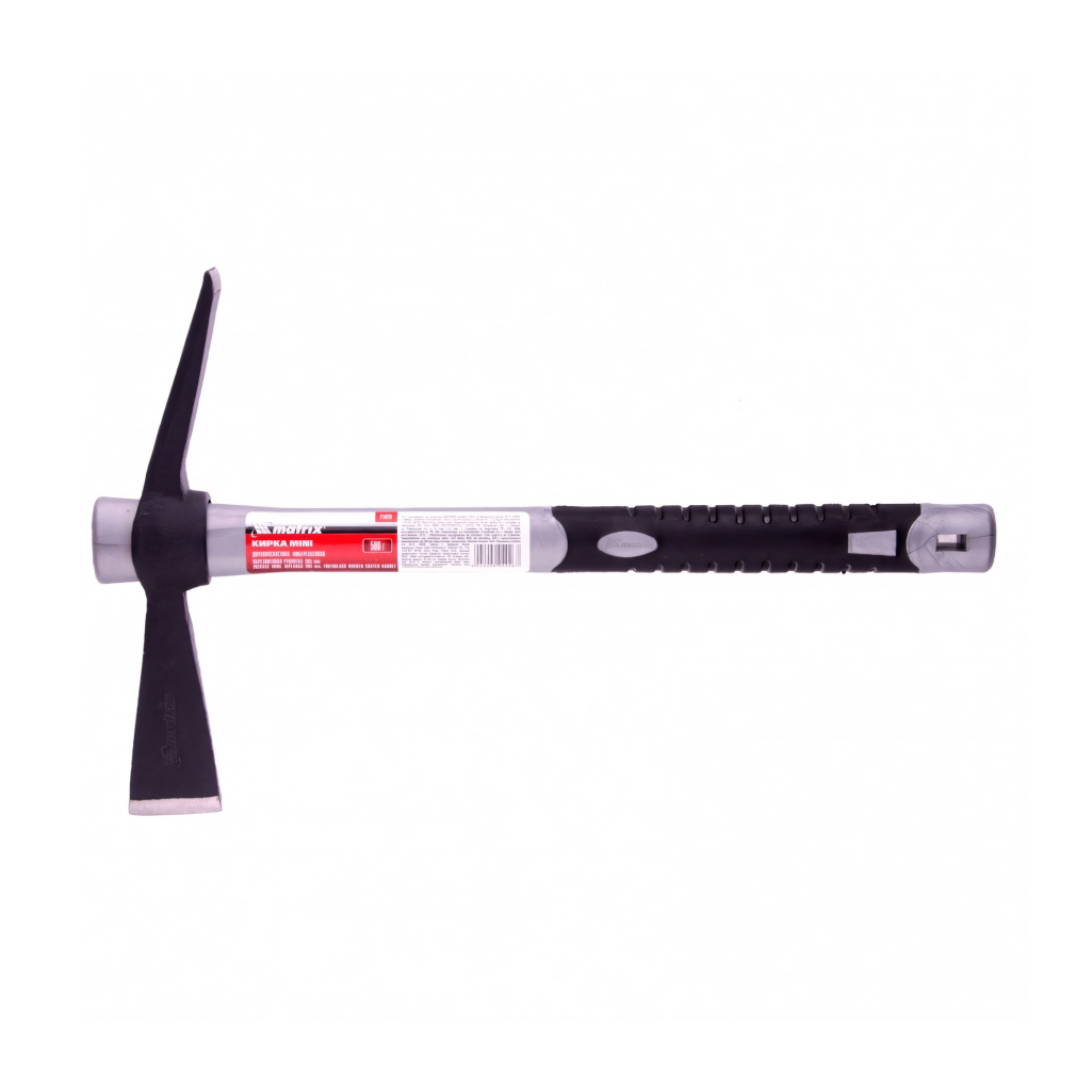 Двухплоскостная кирка Matrix Mini с фибергласовой обрезиненной рукояткой, 500 г, 385 мм, применяется для мелких садовых работ. Одна сторона заточена по лопатку и предназначена для разбивания грунта, вторая - под топор и предназначена для перерубания корней.