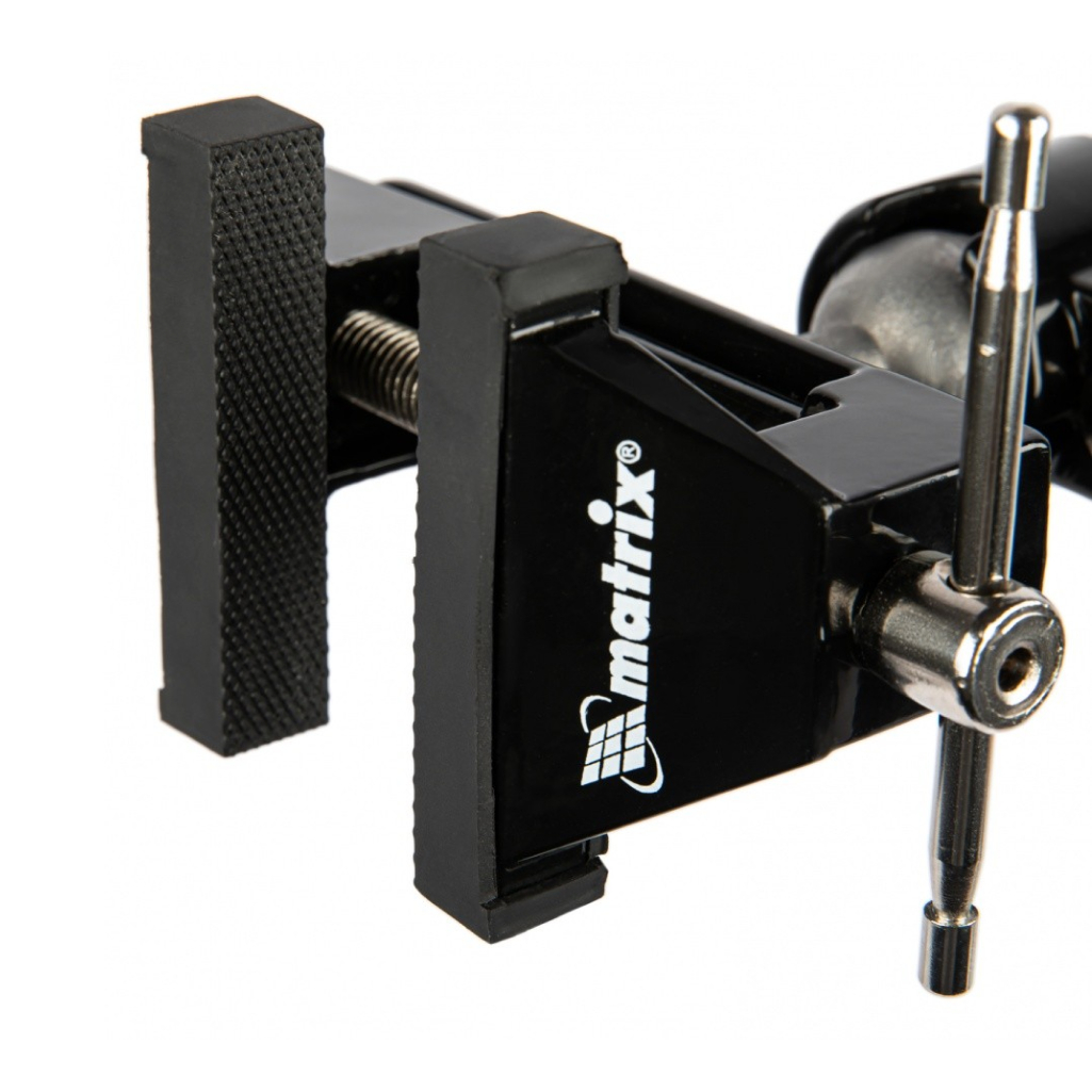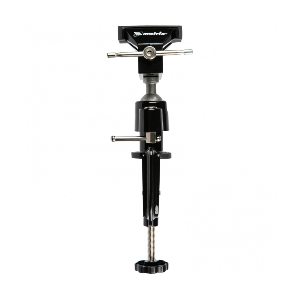 Многофункциональные настольные тиски Matrix с шириной губок 70 мм, сменной насадкой-хомутом для дрели и шарнирным механизмом имеют рабочий ход 50 мм. Данный слесарный инструмент оптимально подходит для закрепления небольших заготовок. Тиски пригодятся при обработке деталей в процессе моделирования, ремонта бытовой техники и других тонких работ.