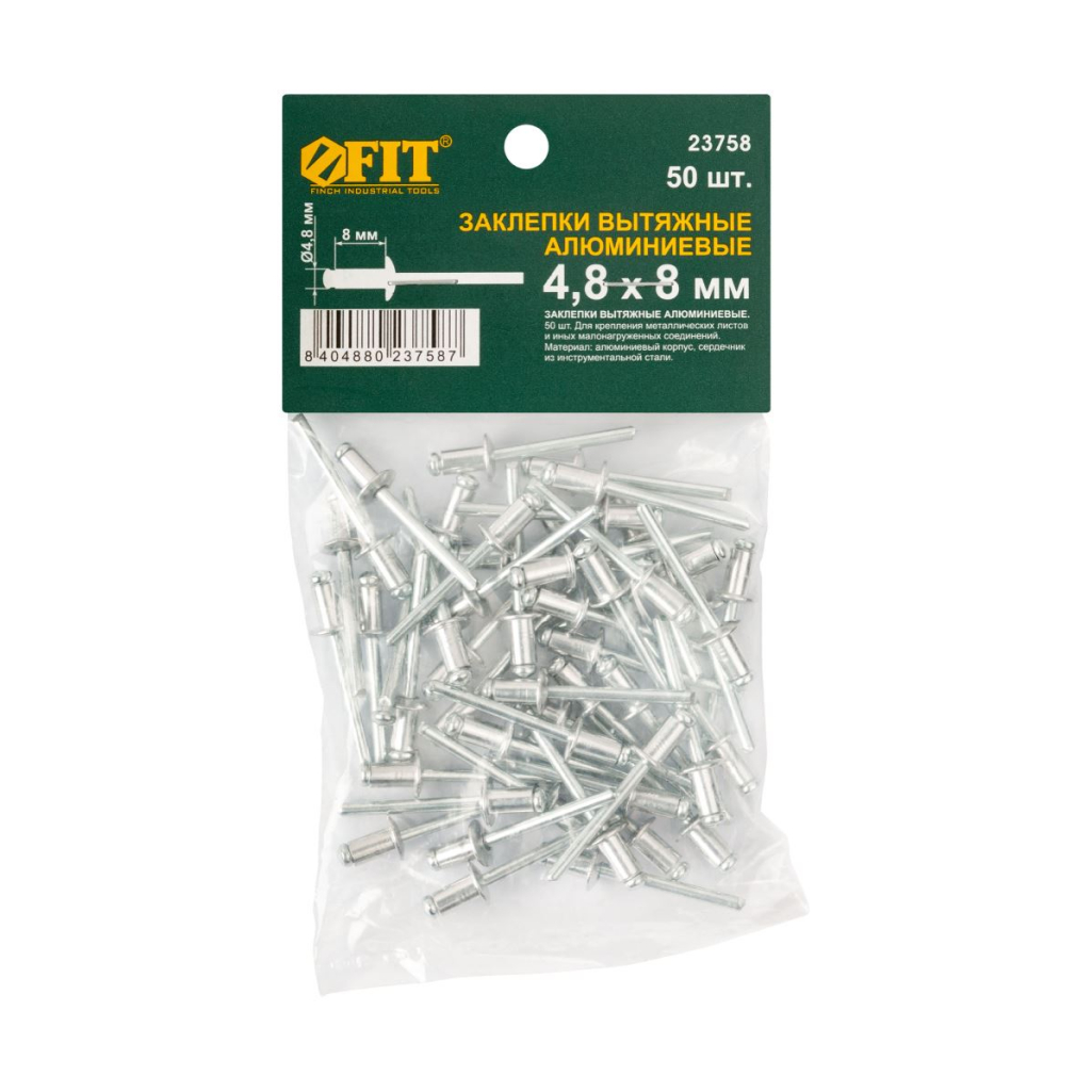 Заклепки алюминиевые FIT 4,8 х 8 мм вытяжные 50 шт (23758)