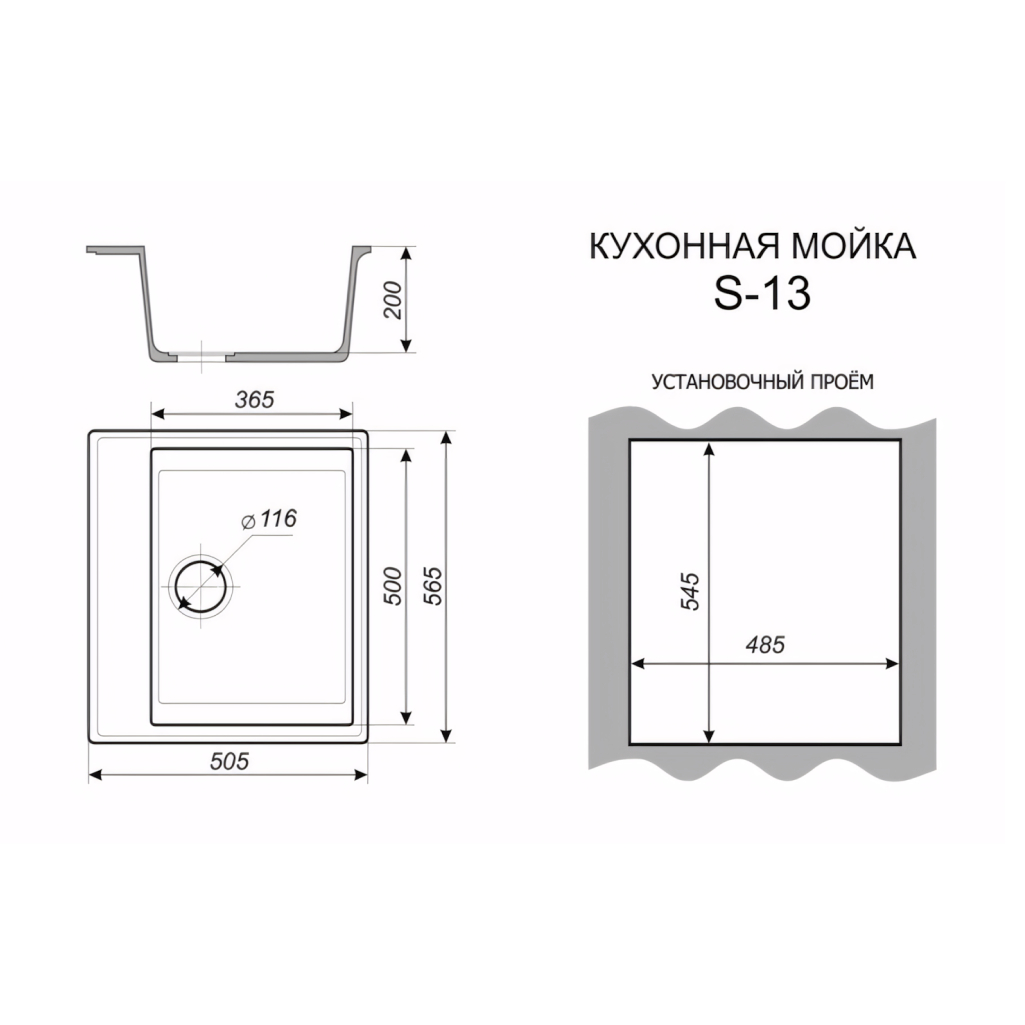 | Общий размер мойки | 565х505 мм |