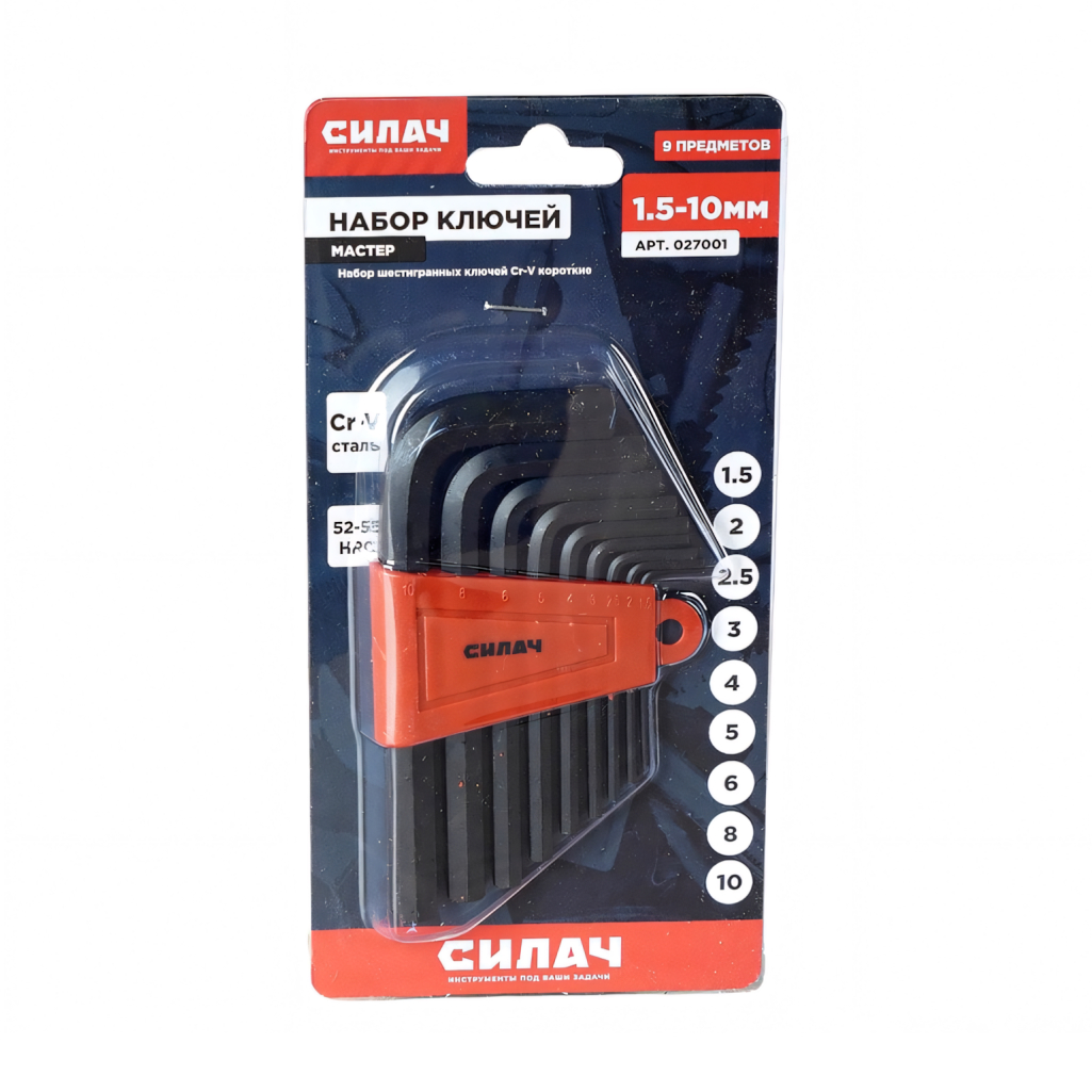 Набор шестигранных ключей Силач Стандарт НЕХ 1,5-10 мм, черные 9 шт (027001)