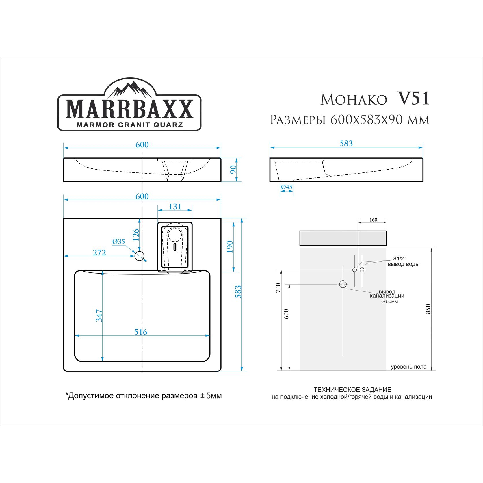 | Материал | Литьевой мрамор |