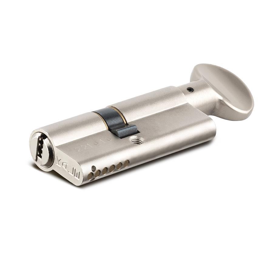 Цилиндровый механизм с вертушкой серии 164 SM имеет 2 класс безопасности, 6 латунных комбинативных пинов обеспечивают 91 000 комбинаций. Цилиндр оборудован стальными штифтами против высверливания. Для усложнения вскрытия цилиндров отмычкой используются пины грибовидной формы.